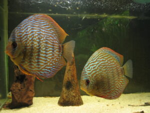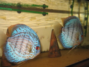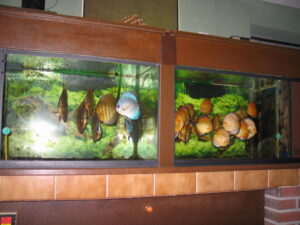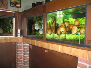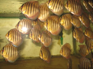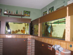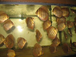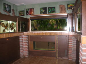 Die Leidenschaft zum Diskus begann schon vor ca. 25 Jahren. In einem eingerichteten Aquarium setzte ich mehre Halbwüchsige des Farbschlages türkis ein. Im Laufe der Zeit bildeten sich die Paare, laichten ab und pflegten auch vorbildlich.Nur mit der Aufzucht und Fütterung im bepflanzten Becken war es schlecht. Also mussten weitere Becken aufgestellt werden. Über 10 Jahre lang züchtete ich erfolgreich den Farbschlag türkis und auch blau. Aus erheblichem Zeitmangel musste ich dann mein Hobby aufgeben.Anfang des Jahres 2006 ergriff mich die alte Leidenschaft wieder und nach und nach setzte ich die Anlage wieder in Betrieb.